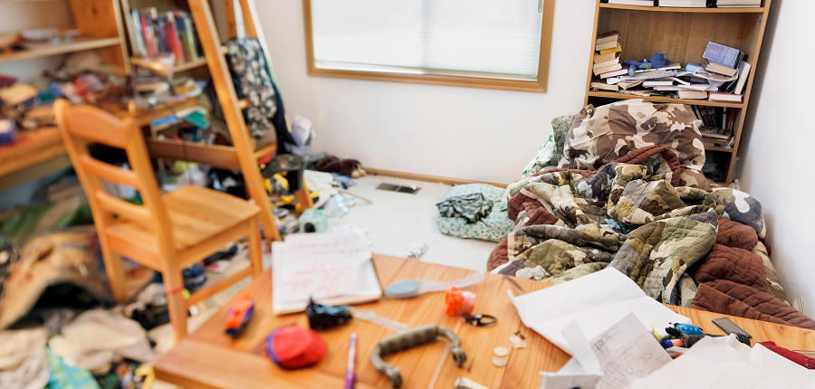 Be aware of slipping hazards, sharp objects, unstable piles, and potential biohazards such as mold, pests, or bodily fluids. If an area feels unsafe, do not enter. -